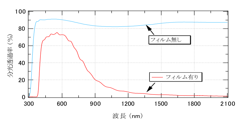 | 透過率 (%) | 吸収率 (%) | 反射率 (%) | 透過率 (%) | 吸収率 (%) | 反射率 (%) | ||||||