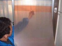 通常の窓フィルムは表面が平らなガラスにしか貼る事ができませんが、このフィルムは粘着層をあつくすることにより、表面が凸凹した型板ガラスなどにも貼る事ができます。