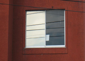 反射の強いタイプの遮光フィルムを貼ると、昼間は外からは鏡のように反射して室内が見えなくなります。室内から見える景色を犠牲にする事なく、室内のプライバシーを保護致します。