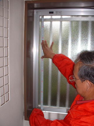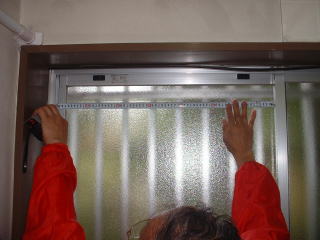 サッシがゆがんでいる場合があります、2箇所計って小さい方を採用します