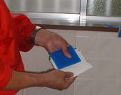 油分がついているとうまくはれません。洗浄後は水で洗剤分を除去して下さい。